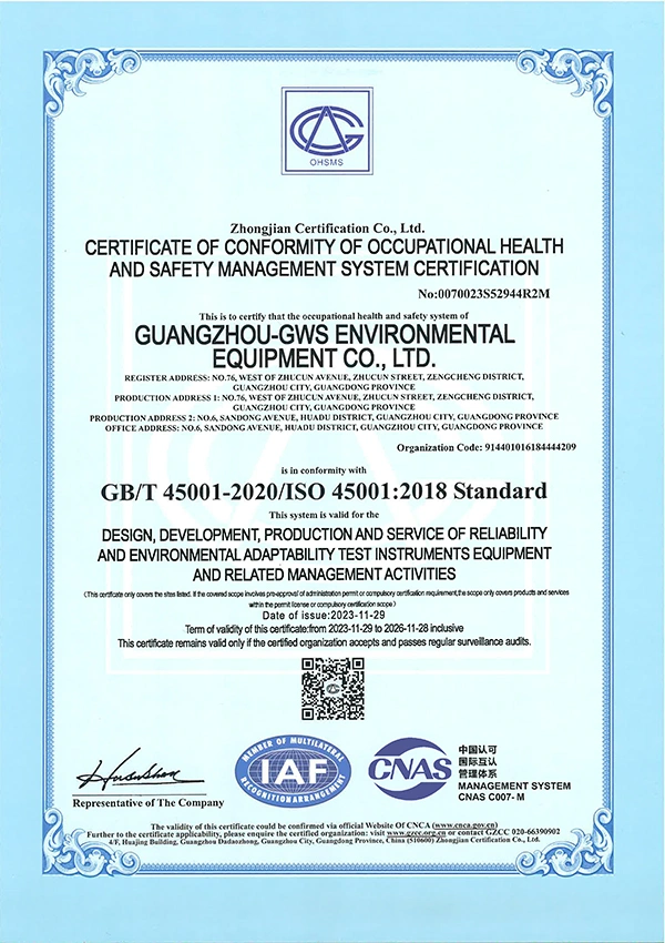 Cada câmara e sistema de vibração deve passar por inspeções rigorosas antes do envio. Isso inclui testes de desempenho essenciais, verificações de segurança e um processo de envelhecimento acelerado de 48 horas. Utilizamos ferramentas de medição avançadas e sistemas de gerenciamento proprietários para rastrear cada etapa da inspeção e coletar dados automaticamente, garantindo que nossos equipamentos atendam aos exigentes padrões de confiabilidade. - Qual é o papel da GWS na indústria de testes ambientais?