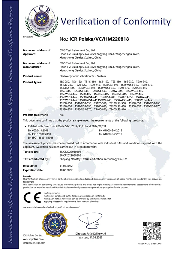 A GWS concentra-se no projeto e na fabricação de equipamentos de teste de vibração eletrodinâmica. Desenvolvemos tecnologias especializadas e possuímos patentes relacionadas ao controle de testes de vibração, à otimização de desempenho e ao projeto estrutural. Nossa linha de equipamentos de teste inclui agitadores eletrodinâmicos, que estão disponíveis em configurações refrigeradas a ar e a água, com suporte para excitação vertical e horizontal, bem como para movimento combinado. Esses sistemas de teste de vibração cobrem faixas de força de 500 N (50 kg) a 600 kN (60 toneladas) e podem ser adaptados para uso padrão em laboratórios ou personalizados para atender a requisitos específicos em ambientes de pesquisa e produção. Nossos equipamentos de teste ambiental são amplamente utilizados na validação de componentes automotivos, em testes de confiabilidade aeroespacial, na qualificação de dispositivos eletrônicos e em muitas outras aplicações industriais.